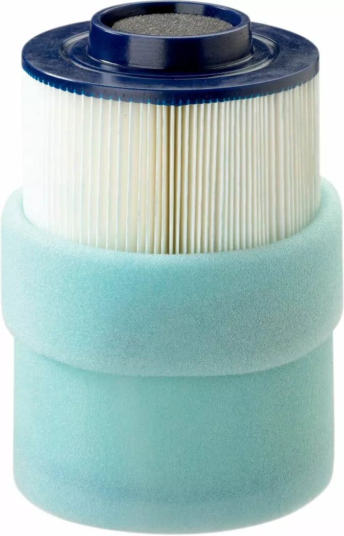 • Coarse outer foam traps large particles while fine inner foam catches the finest dust