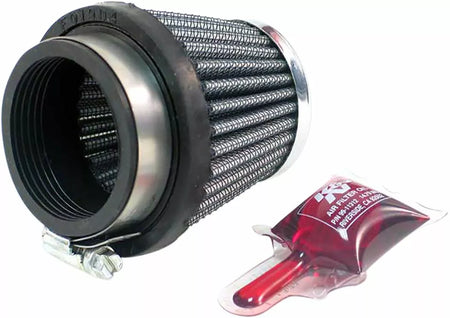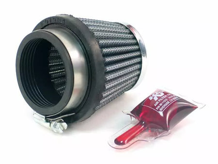 - All K&N air filters in this section clamp directly to the carburetor throat, replacing the stock airbox and filter element; RC prefix part numbers have chrome end caps; the rest are black rubber (K&N clamp-on filters are not street legal)