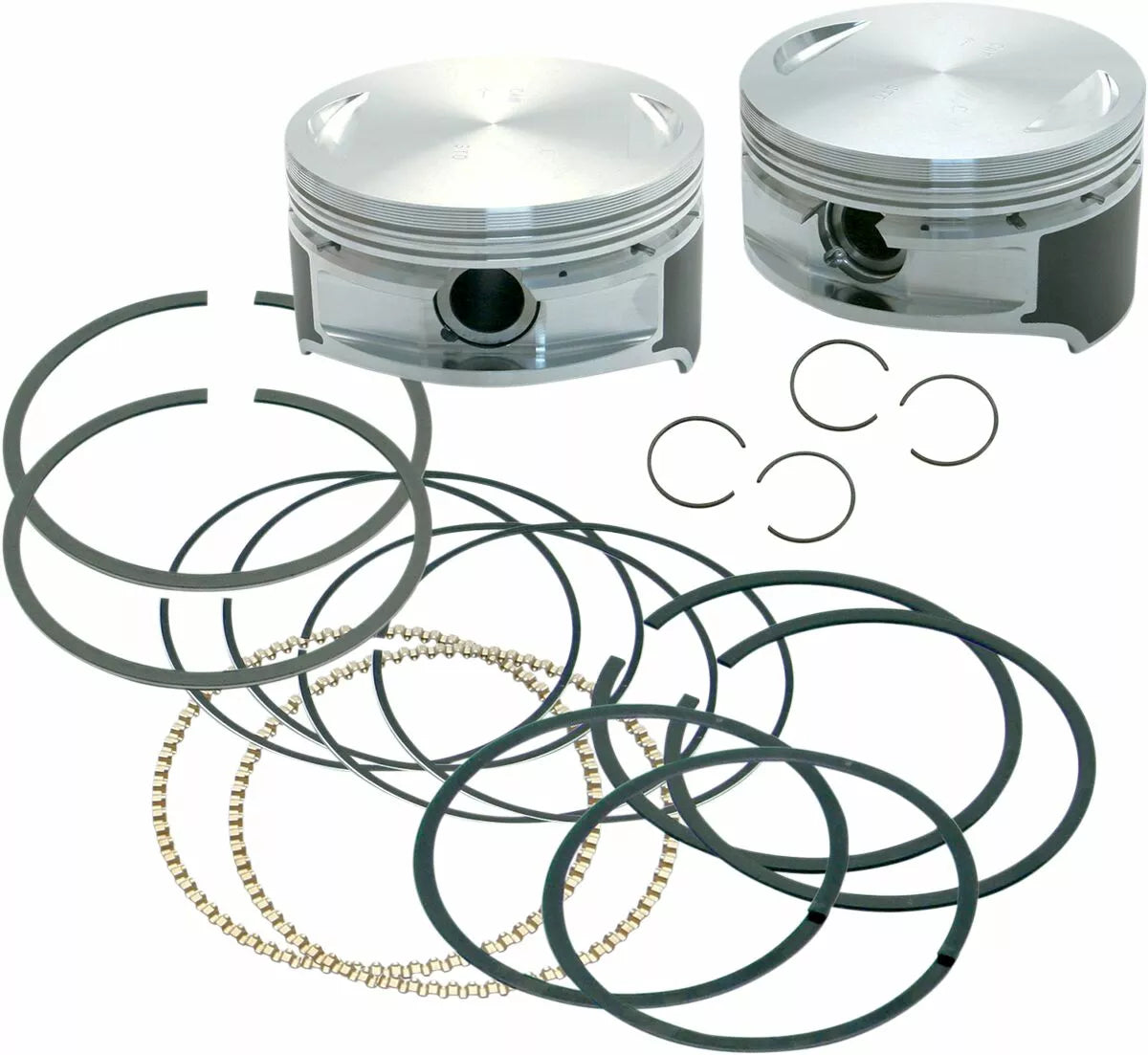 - Piston kit includes forged pistons, rings, wrist pins and clips for a complete motor