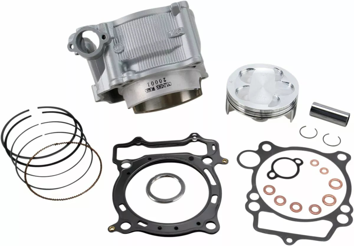 - Kit includes cylinder, piston, rings, pins, clips and top end gasket kit