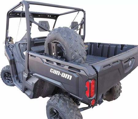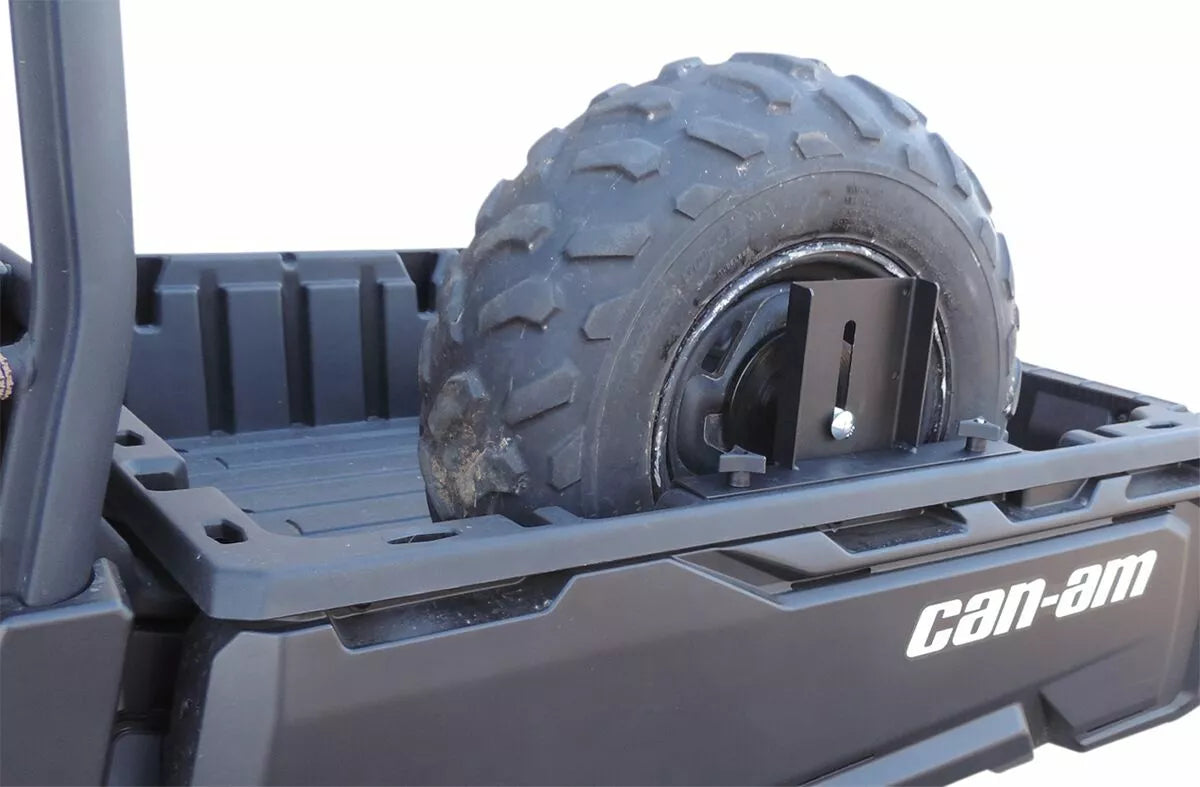 - Allows for your spare tire to be stored securely anywhere along the inside of the bed