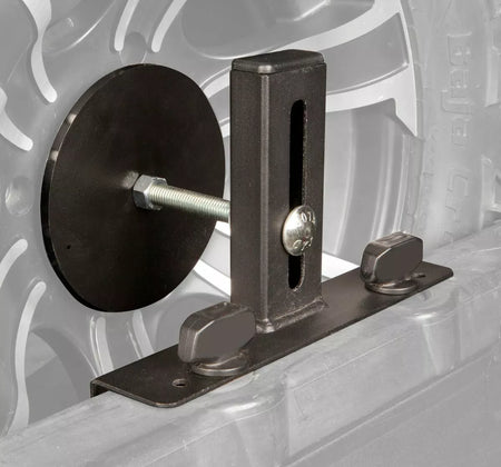 - Bracket anchors for simple, toolless installation of the bracket that allows for the secure mount and transport of your spare tire
