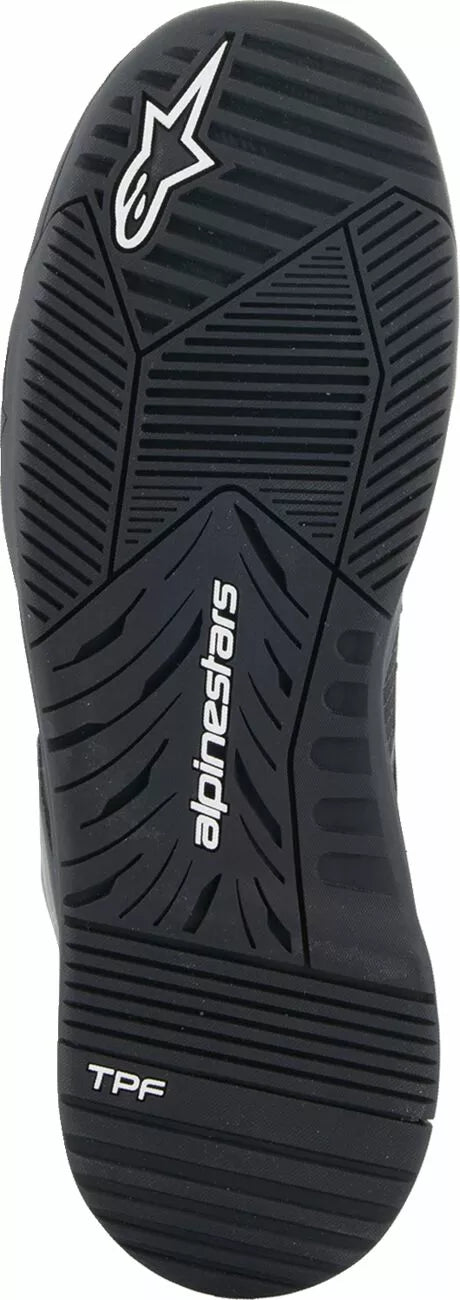 - Reinforcing the shoe is the Transversal Protection Frame (TPF) midsole which is sandwiched between dual density rubber sole with front protective walls, a comfort layer, and the EVA durable yet comfortable midsole with lateral stabilizers