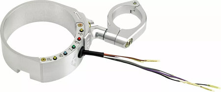 - Attaches to the left fork tube and is virtually adjustable, in every direction, and clears the fuel tank easily