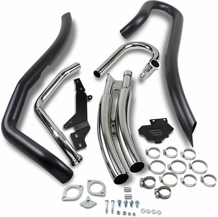 - Equipped with 2.5" full length heatshields which wrap 222° around 1.75" headpipes