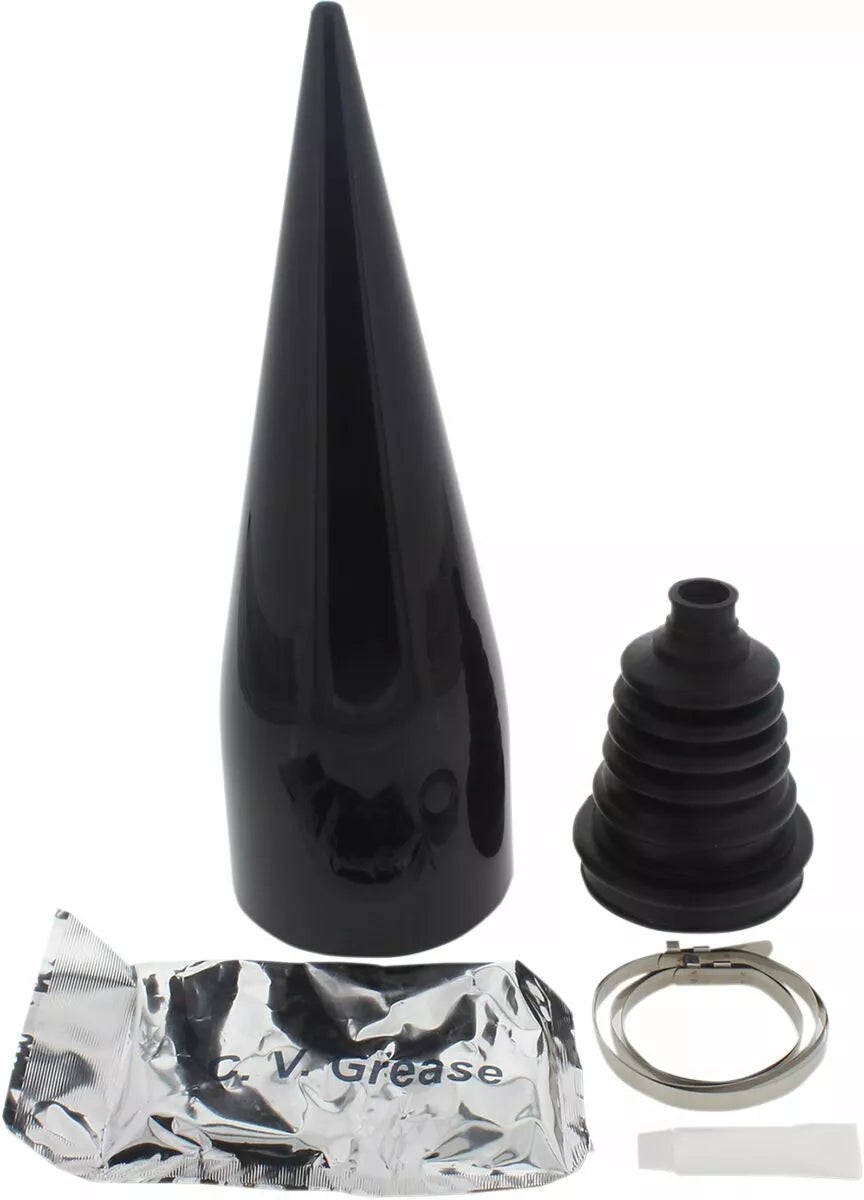 - Kits includes one universal boot, reusable installation cone tool, two stainless steel clamps, grease pack, silicone cone lube, and instructions