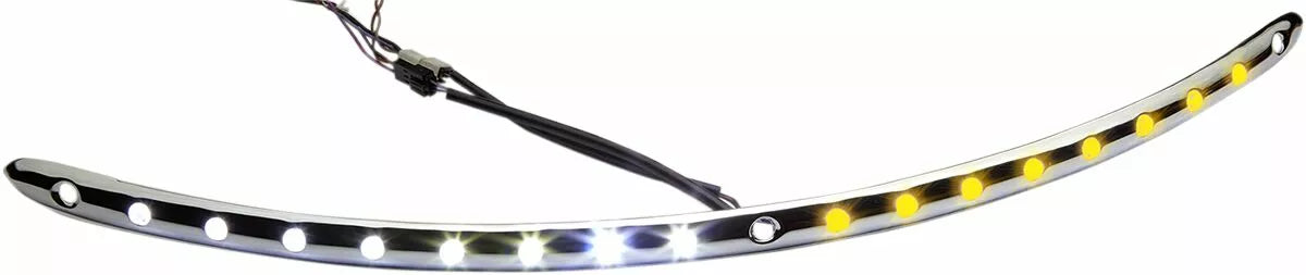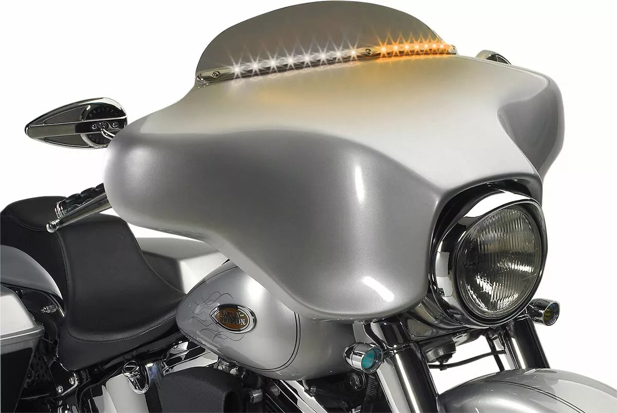 - Windshield trim with integrated sequential amber turn signals and white run lights
