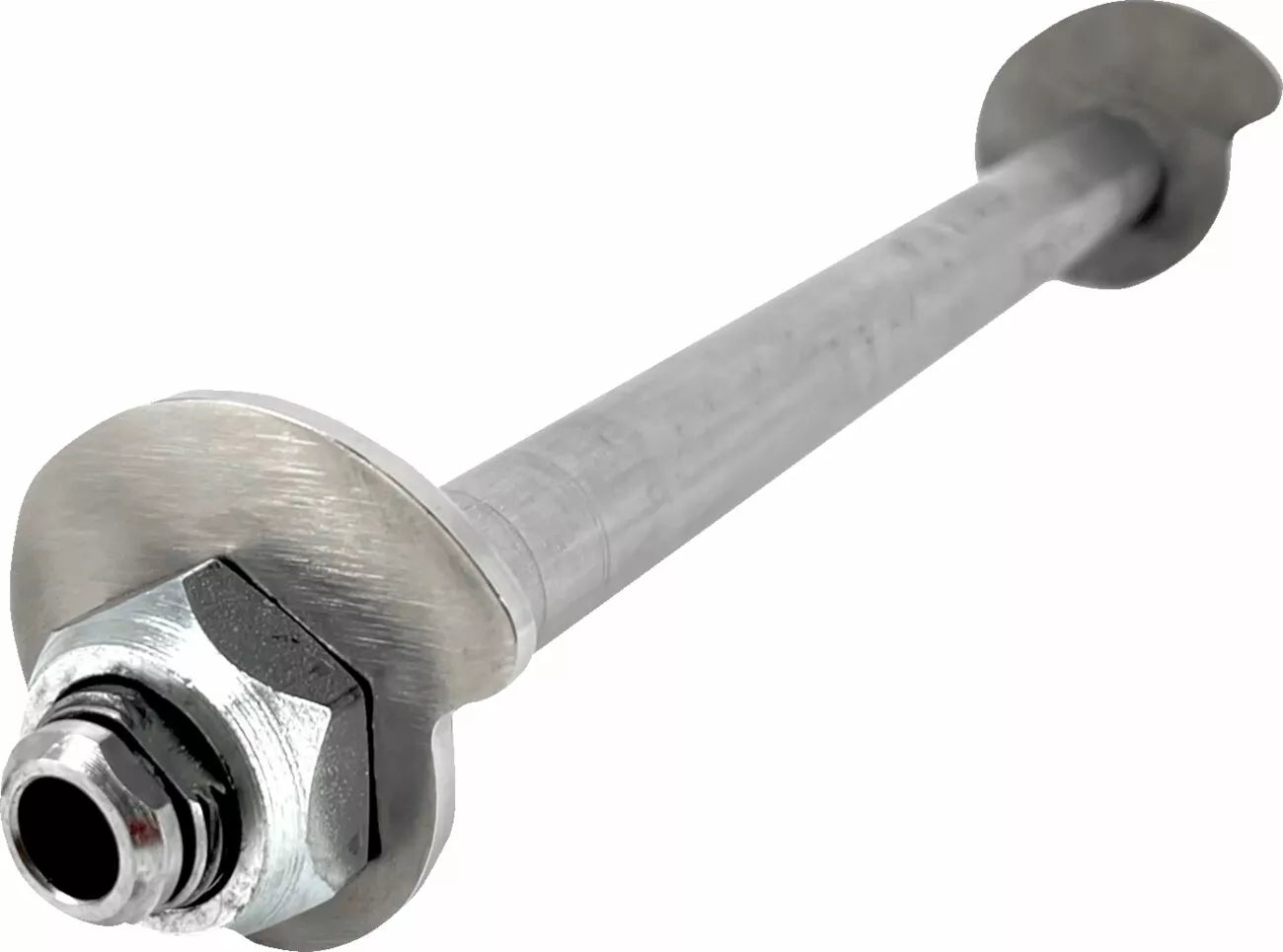 - Kit includes rear axle, sliders, adjuster mounts, safety e-clips, axle nut, and upper and lower shock mount bolts and spacers