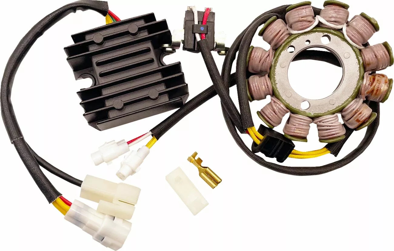 - The kit comes with both a new stator and rectifier-regulator and will reuse the OE flywheel