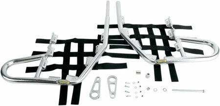 - Wide 1-1/2" black webbing with beefy aluminum net tabs