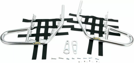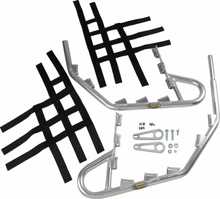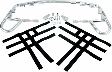 - Custom EZ-fit clamp brackets with silver anodized finish