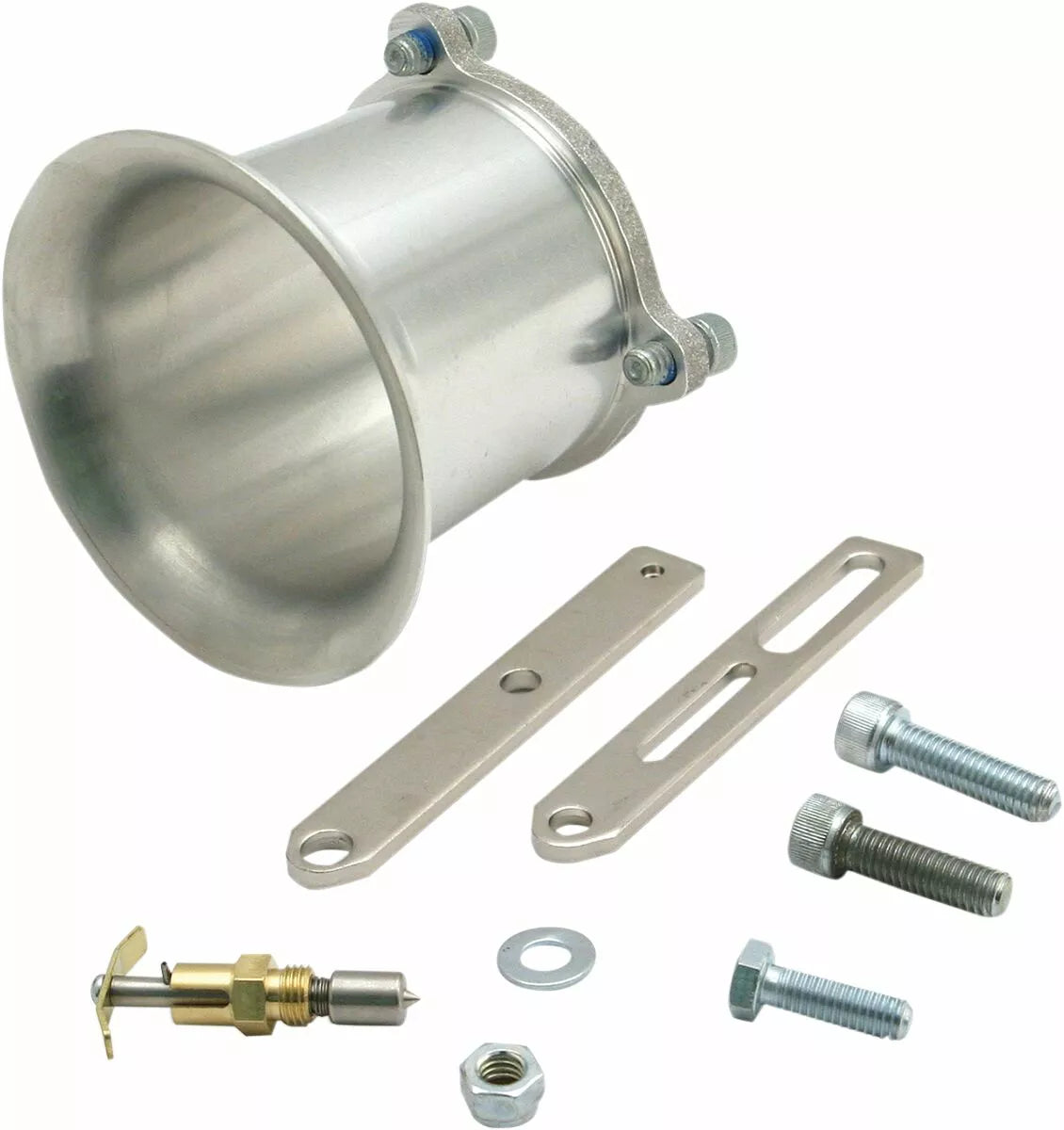 - Kit includes: air horn, three mounting screws, carb support bracket (bracket connects the center crankcase bolt to the bottom manifold carburetor mounting bolt), two longer bottom carb-to-manifold mounting bolts and an enrichment device