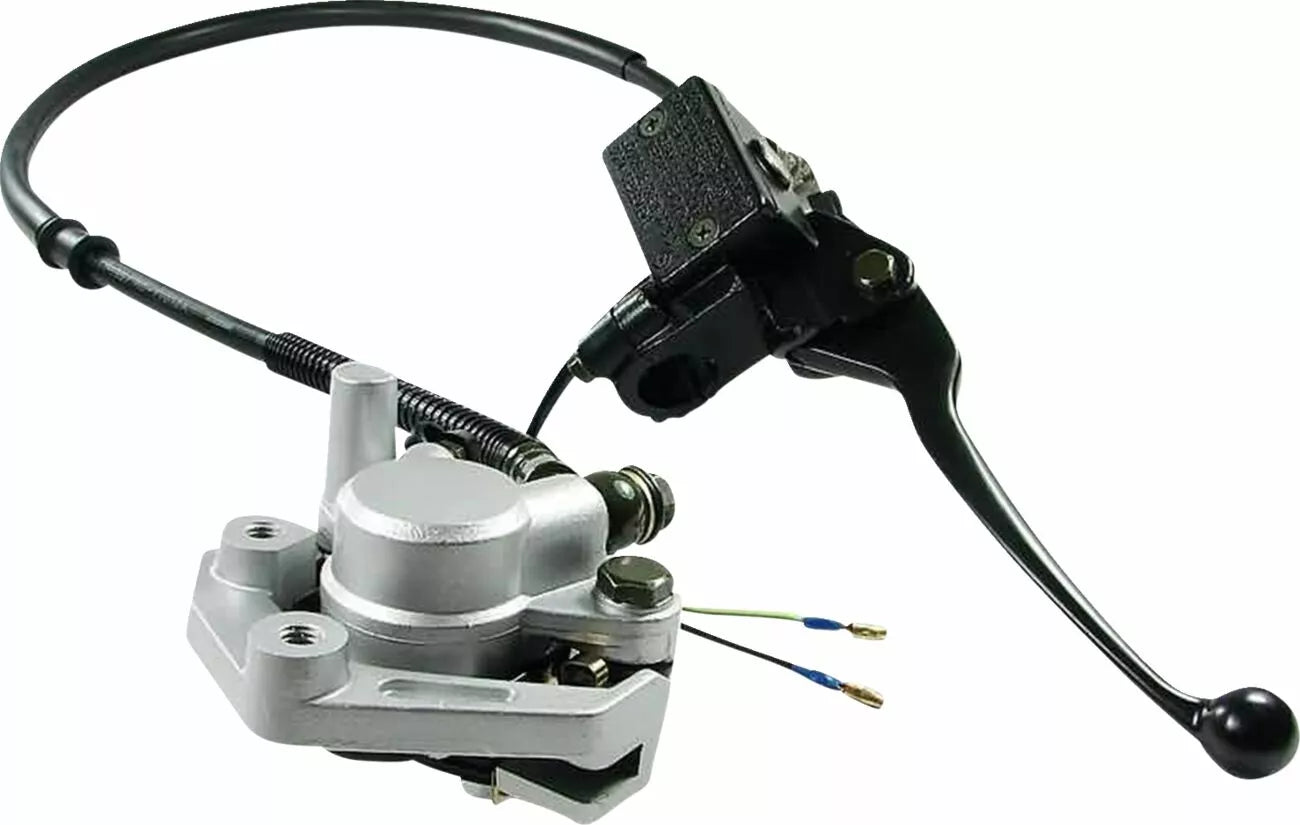 - This brake system consists of a hand brake cylinder (hand brake pump) with lever, hose, calliper with pads and brake light switch.
