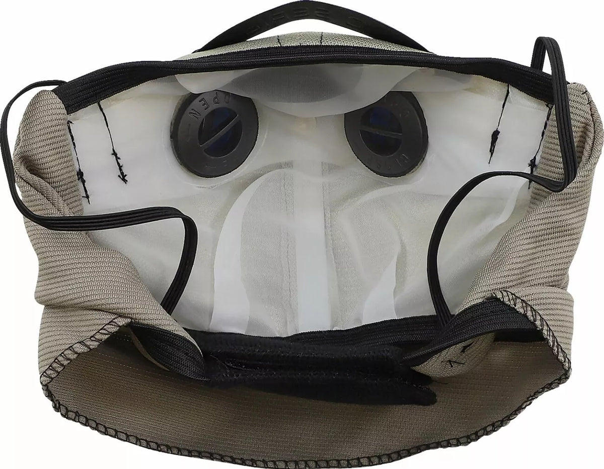 - Heat, CO² and water vapor exit mask through pair of one-way exhaust valves; helps reduce fogging