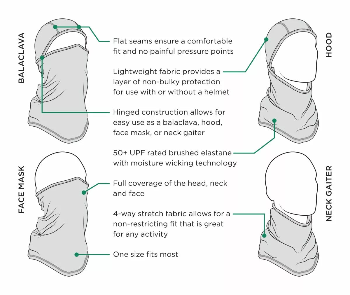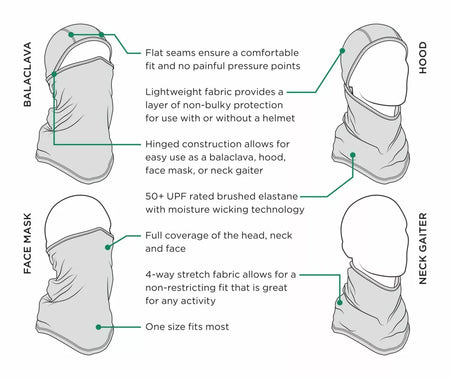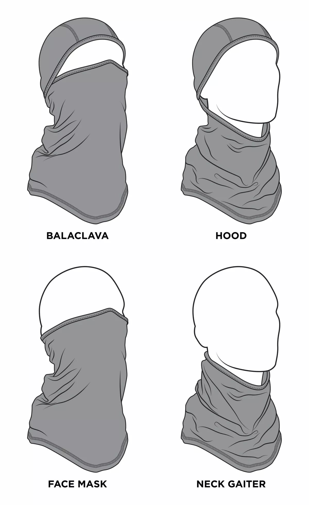 - Versatile all-in-one balaclava, face mask, neck warmer, or whatever combination fits your need to keep warm and protected