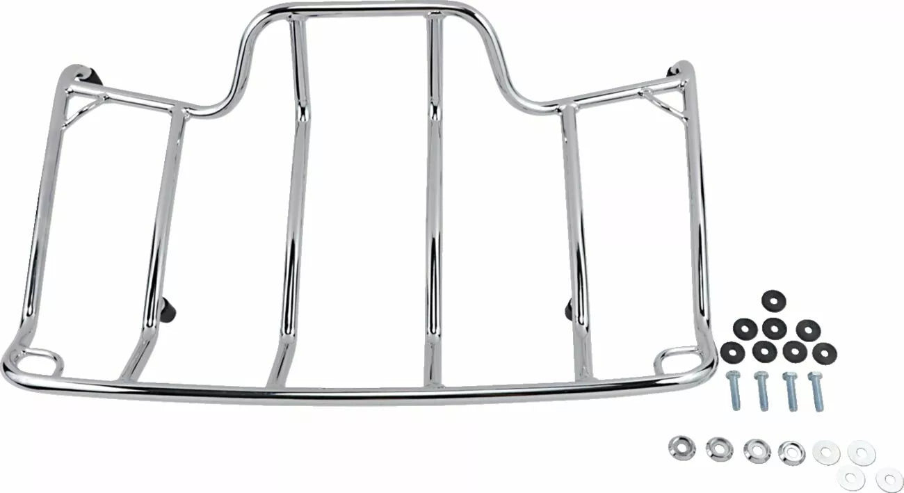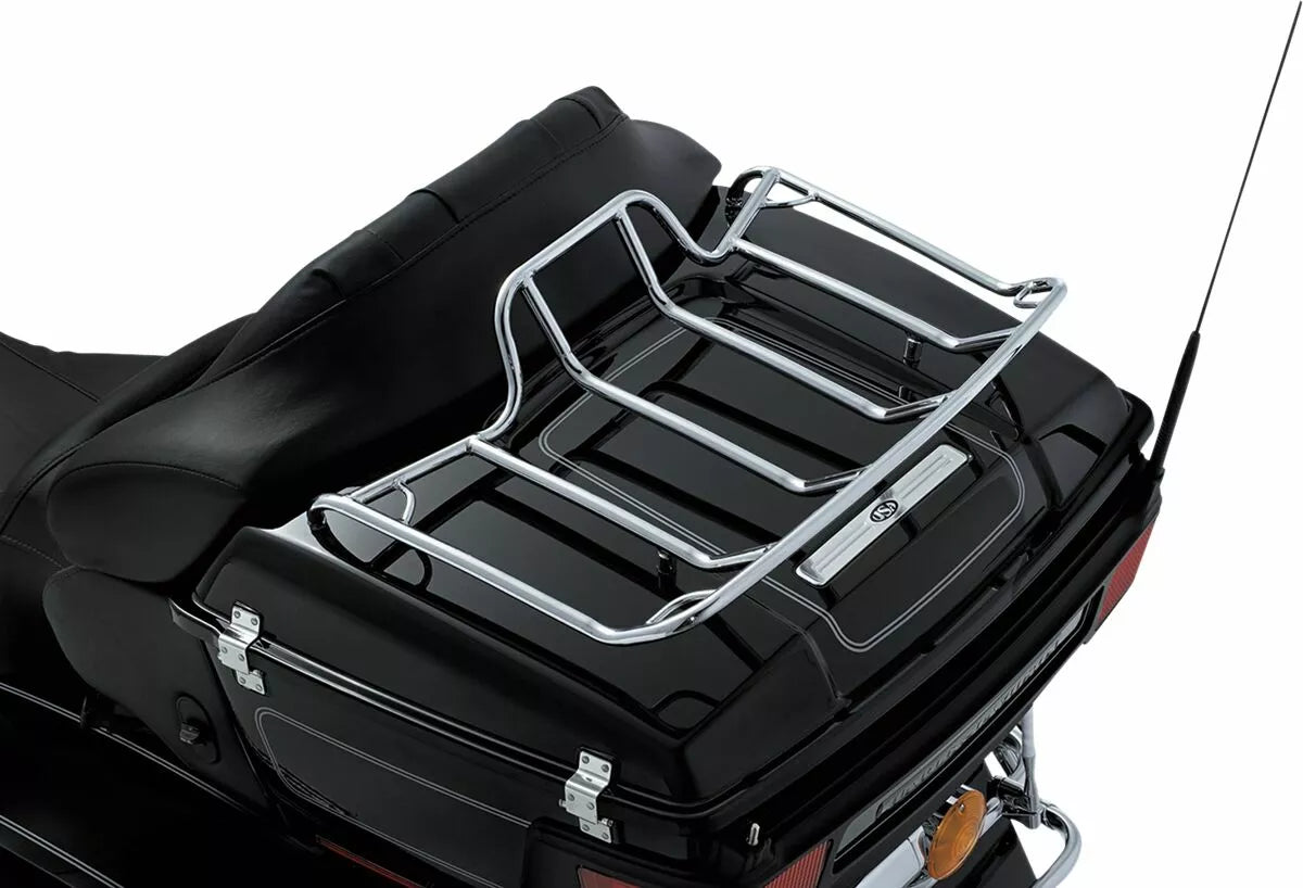 - Extra-large luggage rack has a deep-crate design to keep items secure
