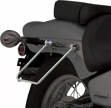 - Chrome steel supports mount to rear fender bracket with new hardware