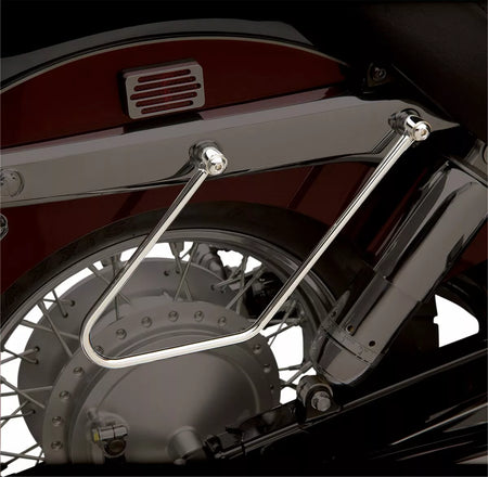 - Holds saddlebags away from brake caliper, swing arms and rear tire