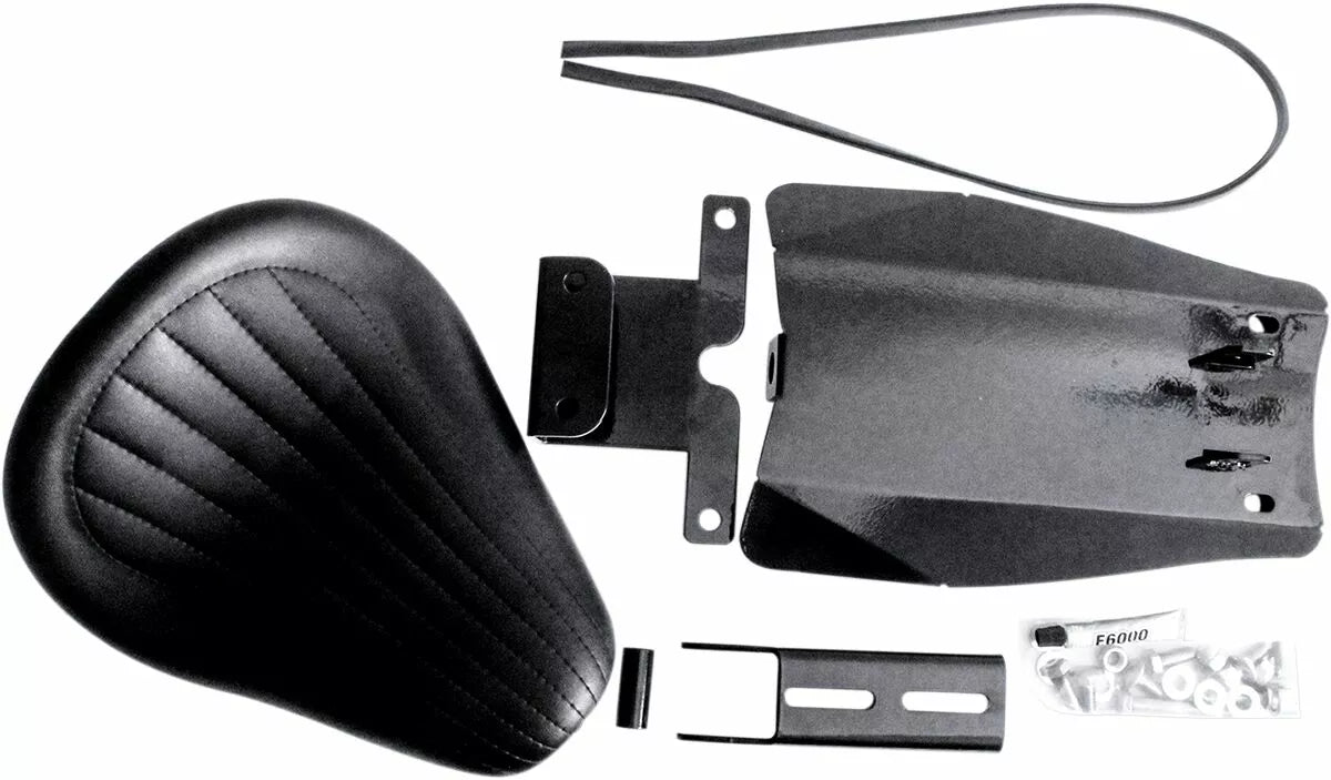 - Outrider seat pan kit comes with a smaller, sportier, black leather seat.