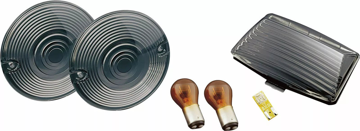 - Kits include fender tip lens with LED bulb and a pair of FL-style smoke turn signal lenses with colored incandescent bulbs