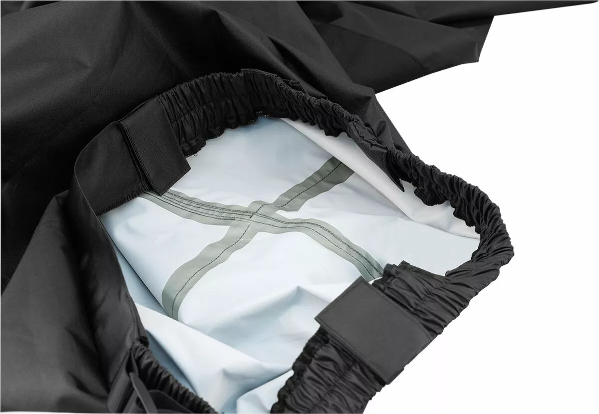 - Over-sized zipper-free self-fastening leg gussets for easy boot entry