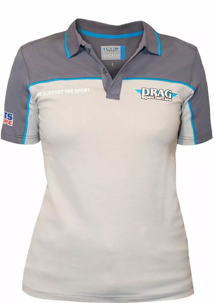 - Women's polo shirt with chest and back Drag Specialties printed logo.