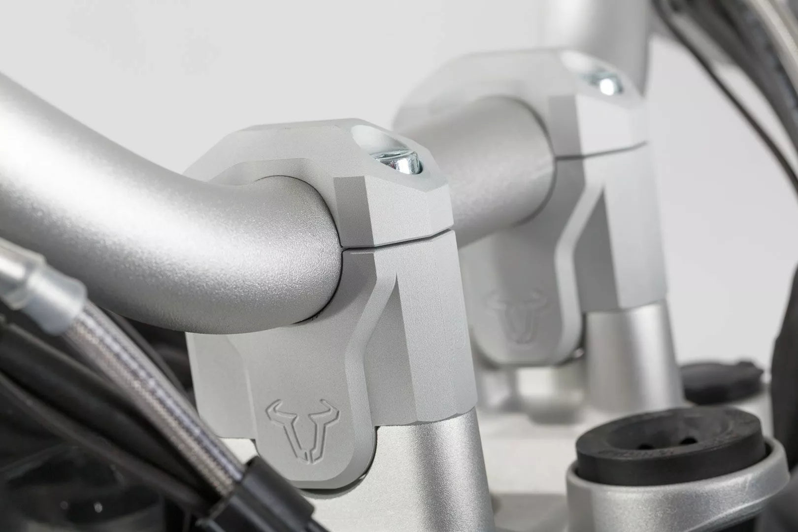 - More driving comfort due to a changed seating position: These bar risers, specially adapted to the vehicle, made of sturdy, CNC-milled aluminium increase the handlebar height by 40 mm