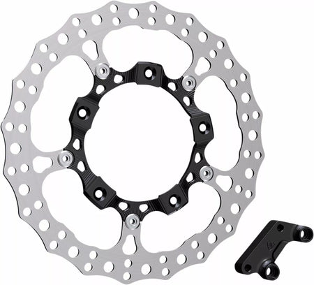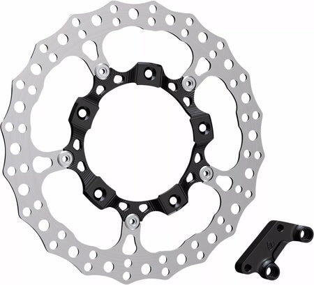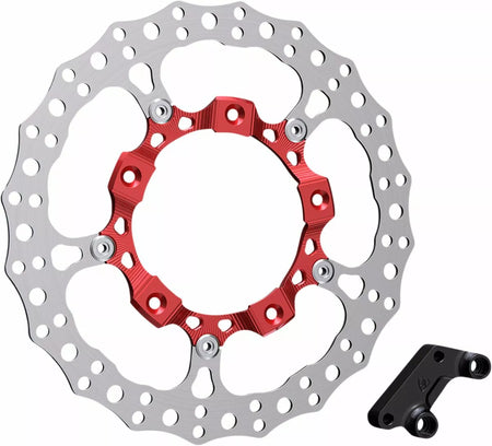 - Each 14” full floating rotor is constructed from 420 stainless steel outer disc that is drilled for optimum performance and a 6061-billet inner carrier