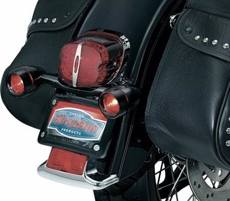 - Light bar relocates license plate below the taillight; built-in light illuminates the license plate
