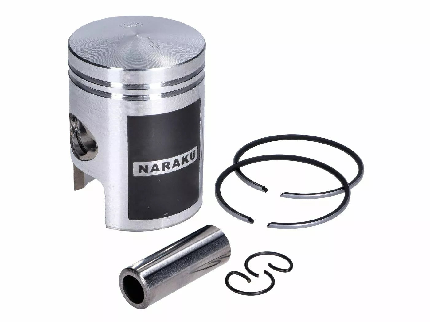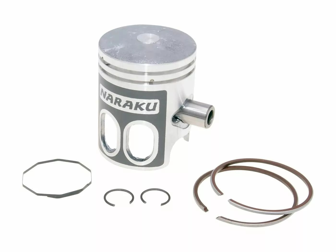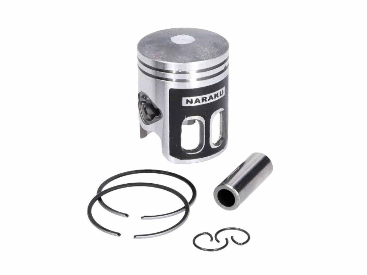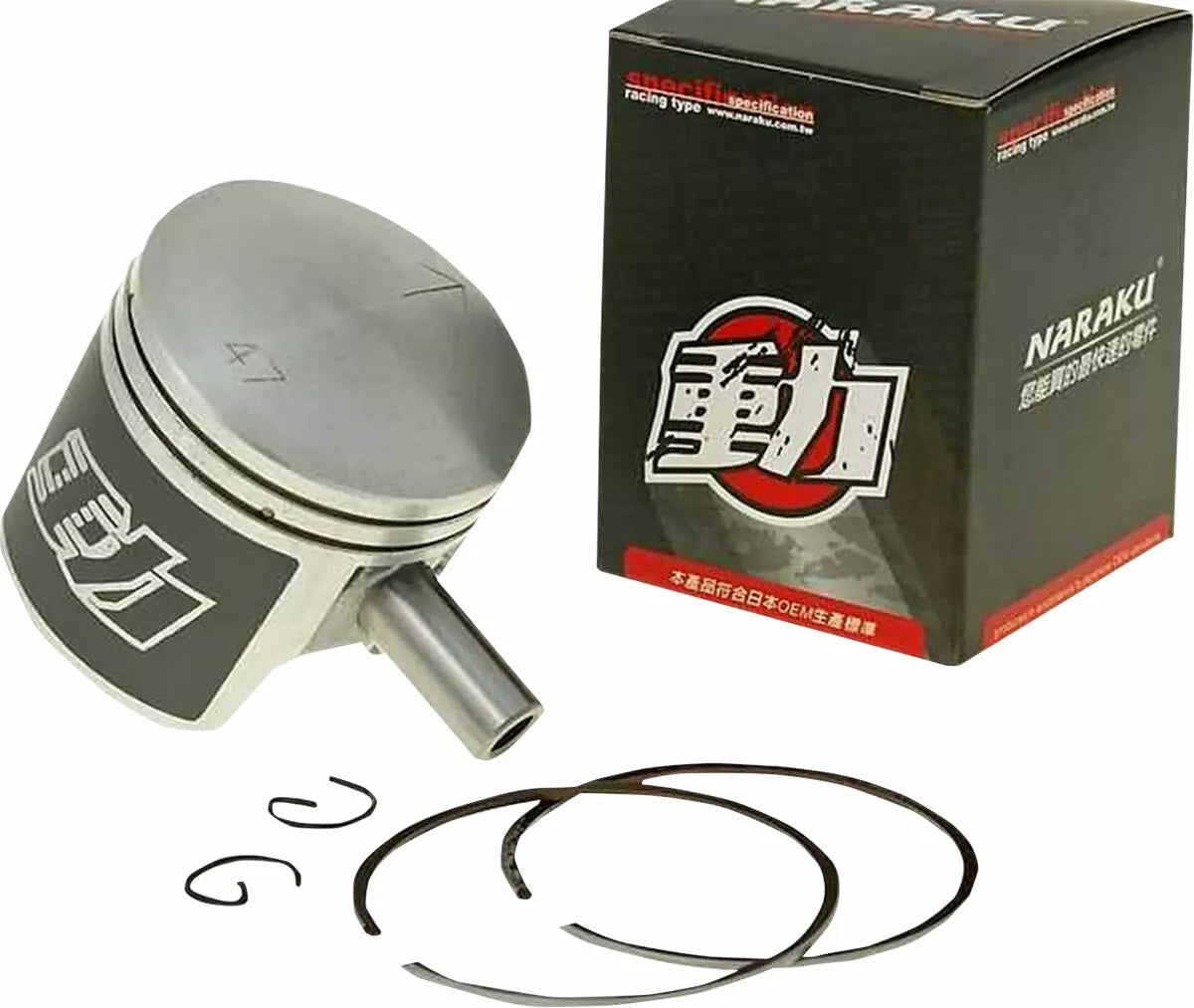 - High-quality replacement piston for 50cc original and 50cc Naraku cylinders for Morini AC engines. Delivery as shown, including: piston rings, gudgeon pin and circlips. Special molybdenum coating for protecting the cylinder and piston during the run-in period. It is a good rule to change the piston in a 50cc 2-stroke engines after about 6,000 miles. This will help engine performance and reduce fuel consumption.