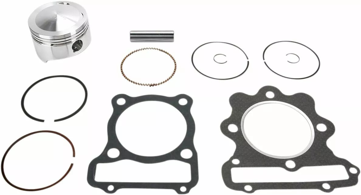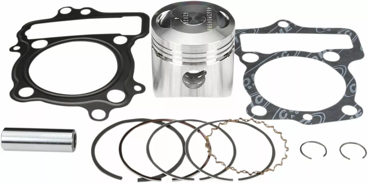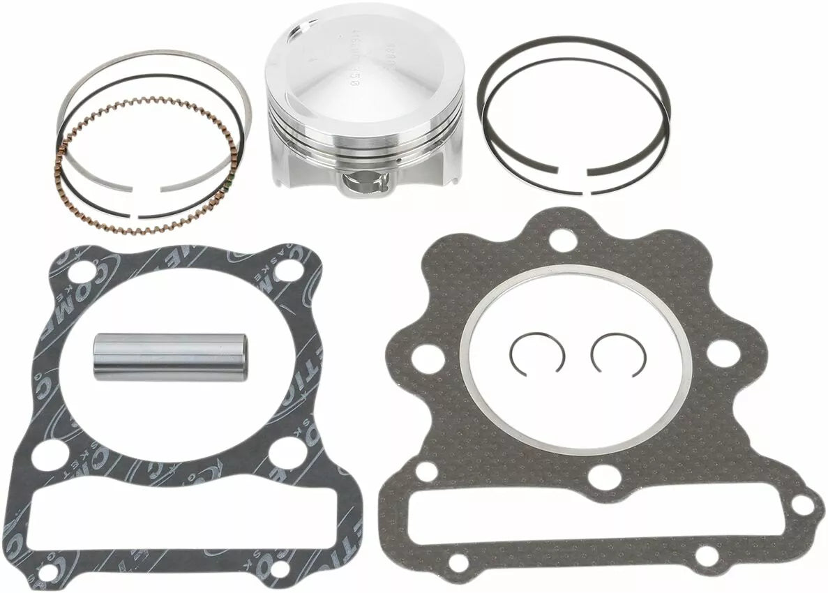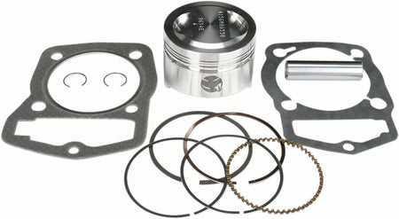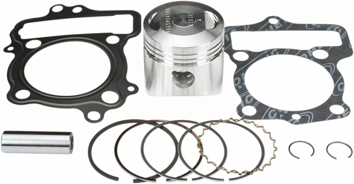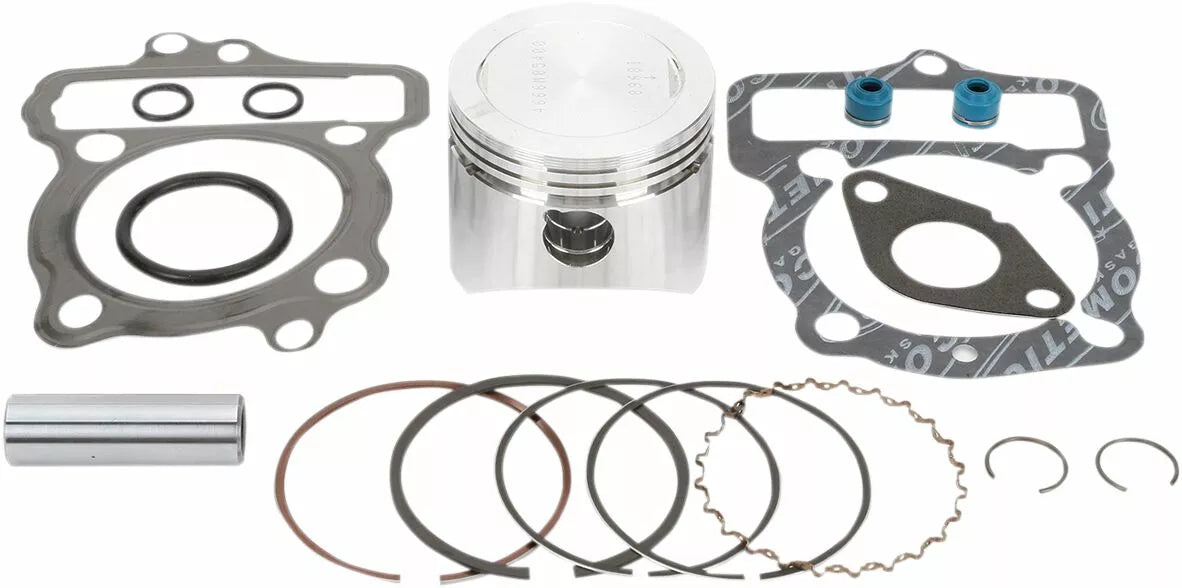 - Complete piston kit includes pistons, rings, wrist pins, circlips and top-end gasket kit for one complete engine