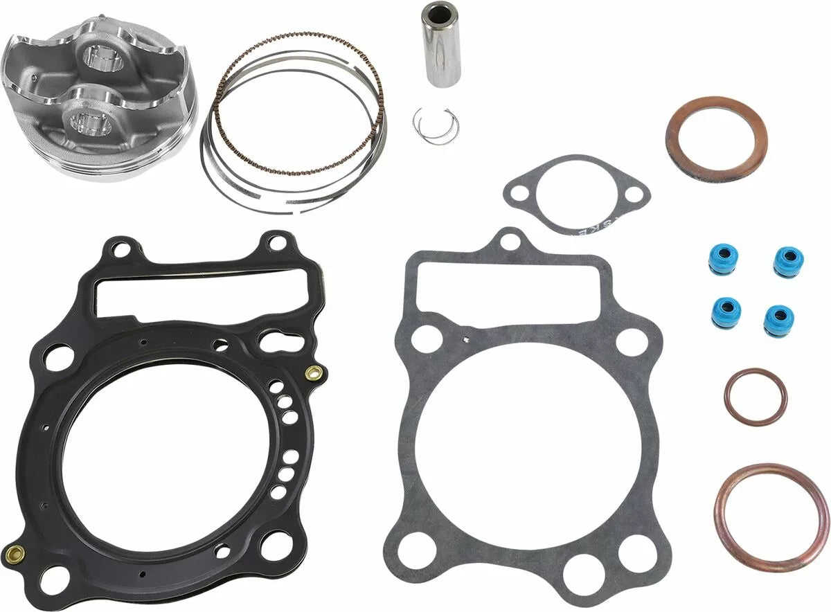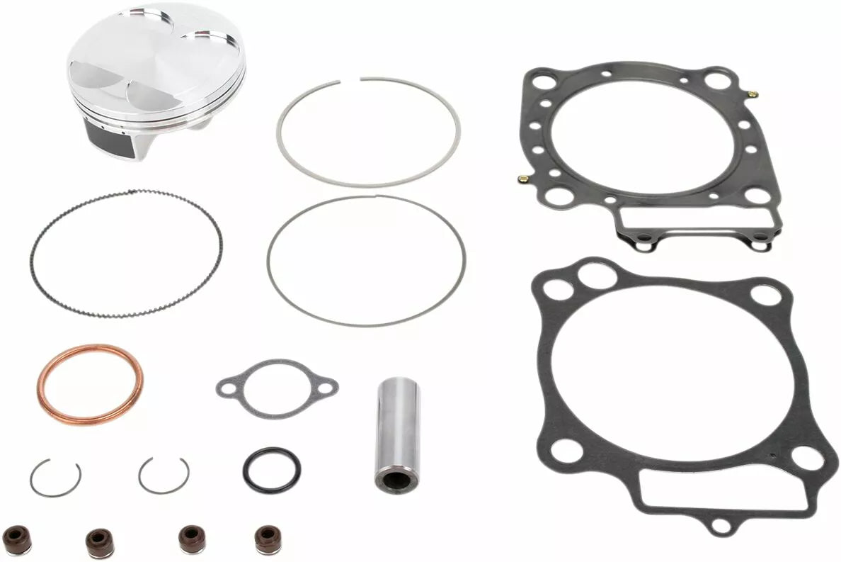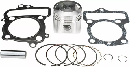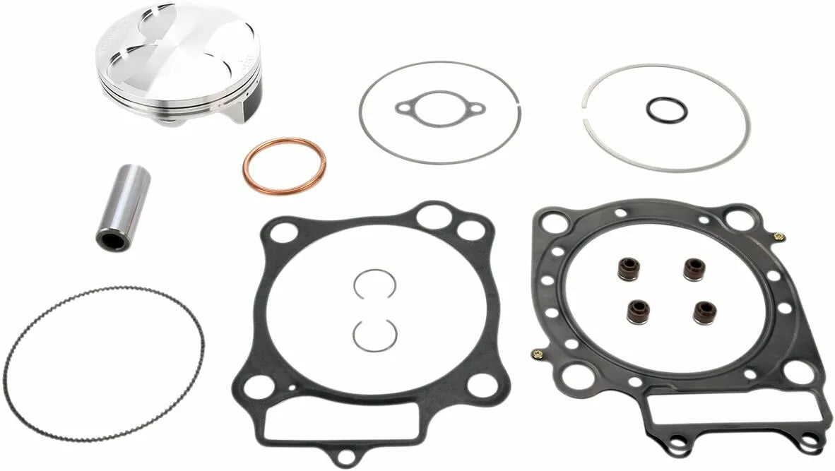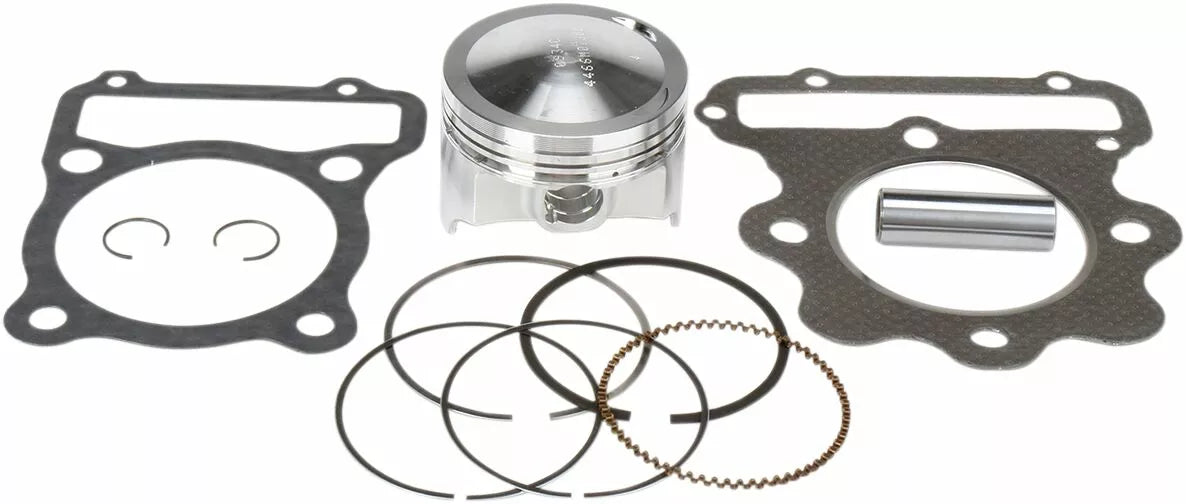 - Complete piston kit includes pistons, rings, wrist pins, circlips and top-end gasket kit for one complete engine