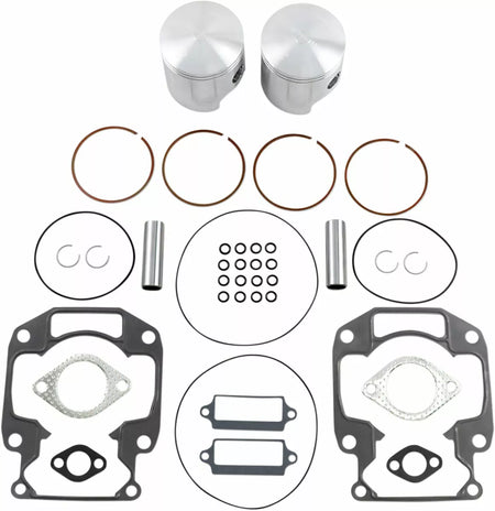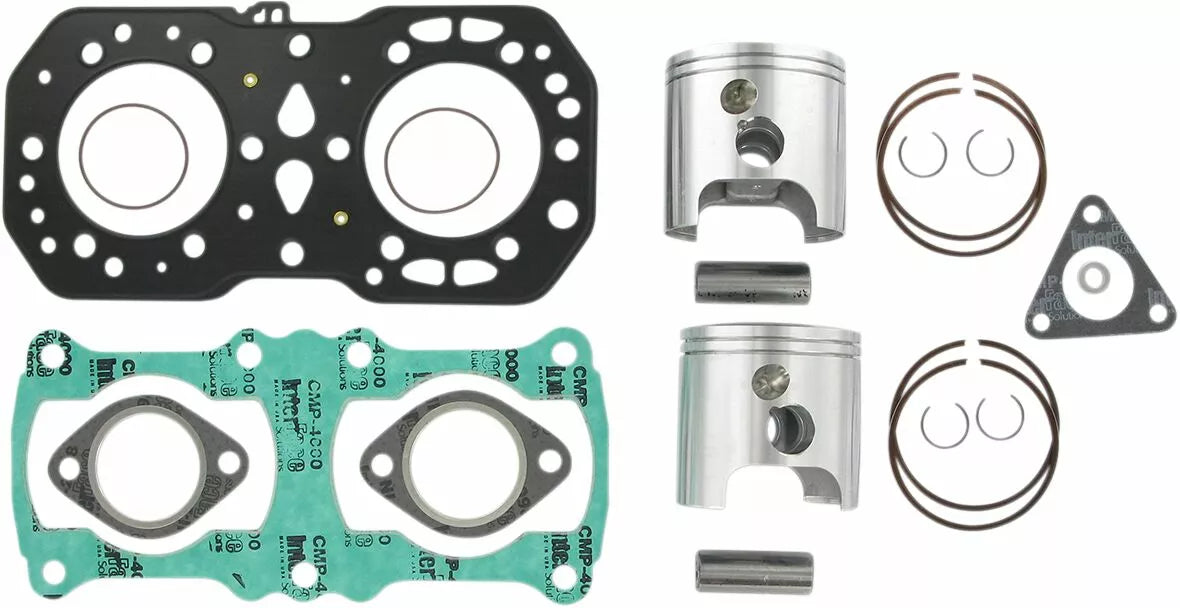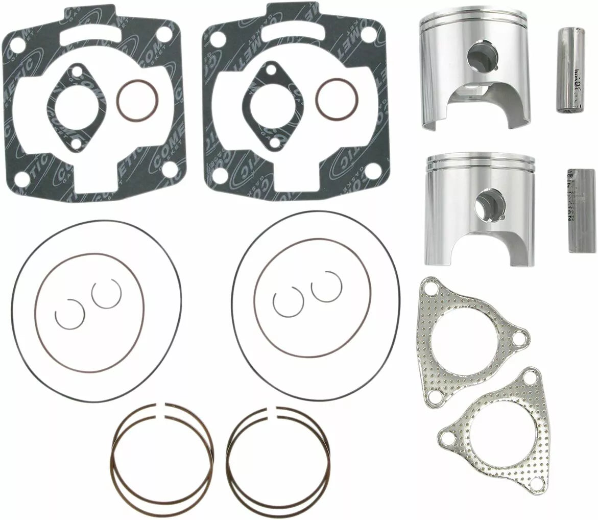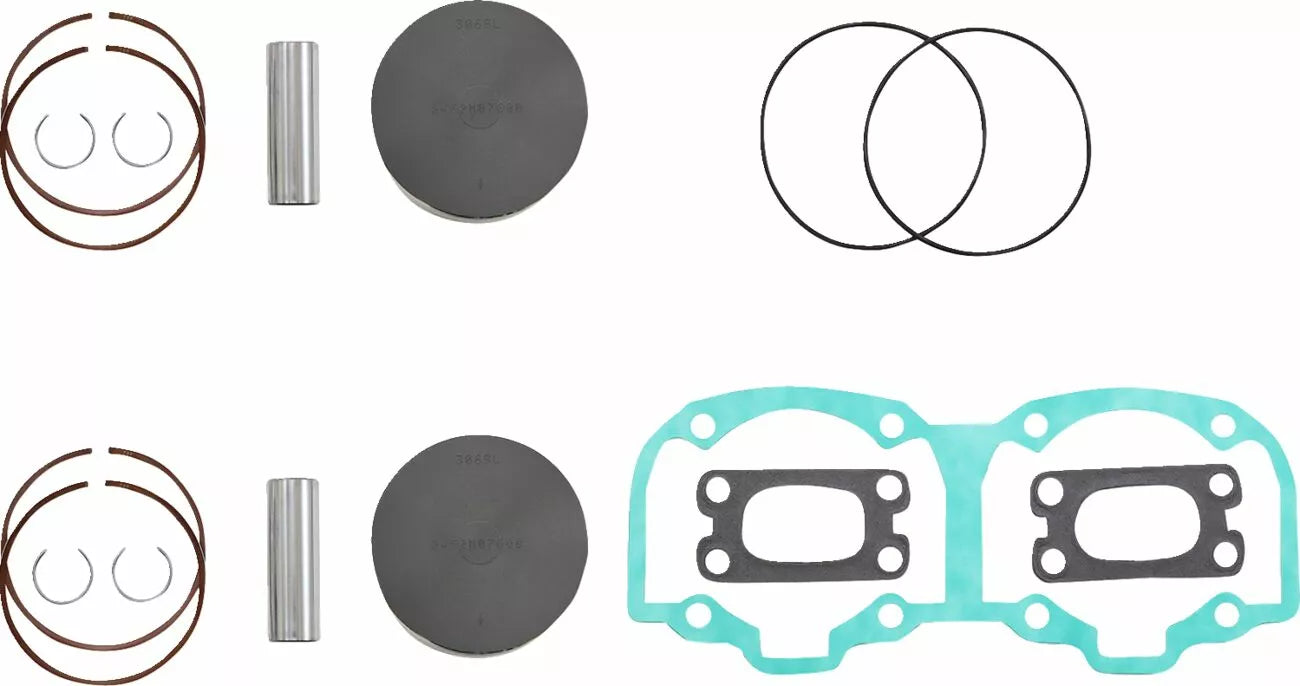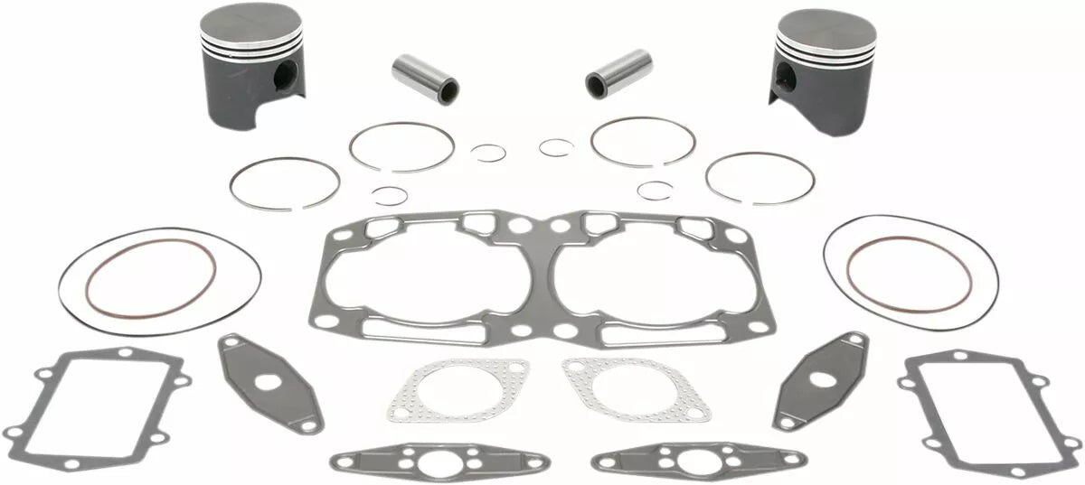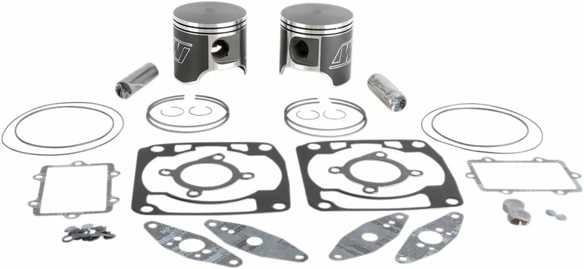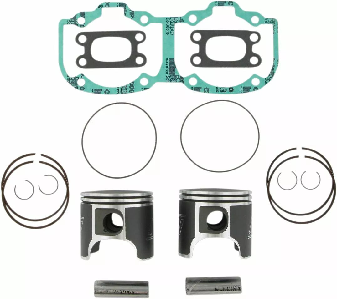 - Kit includes forged pistons, rings, wrist pins, circlips and top end gasket set