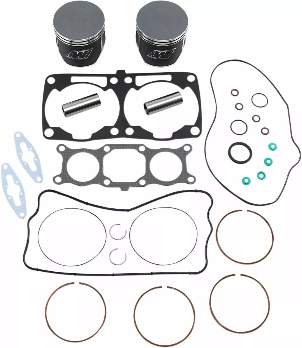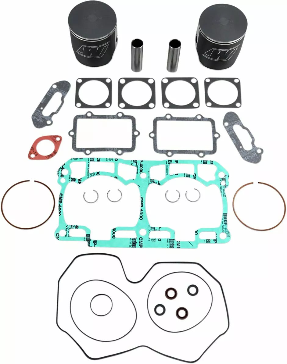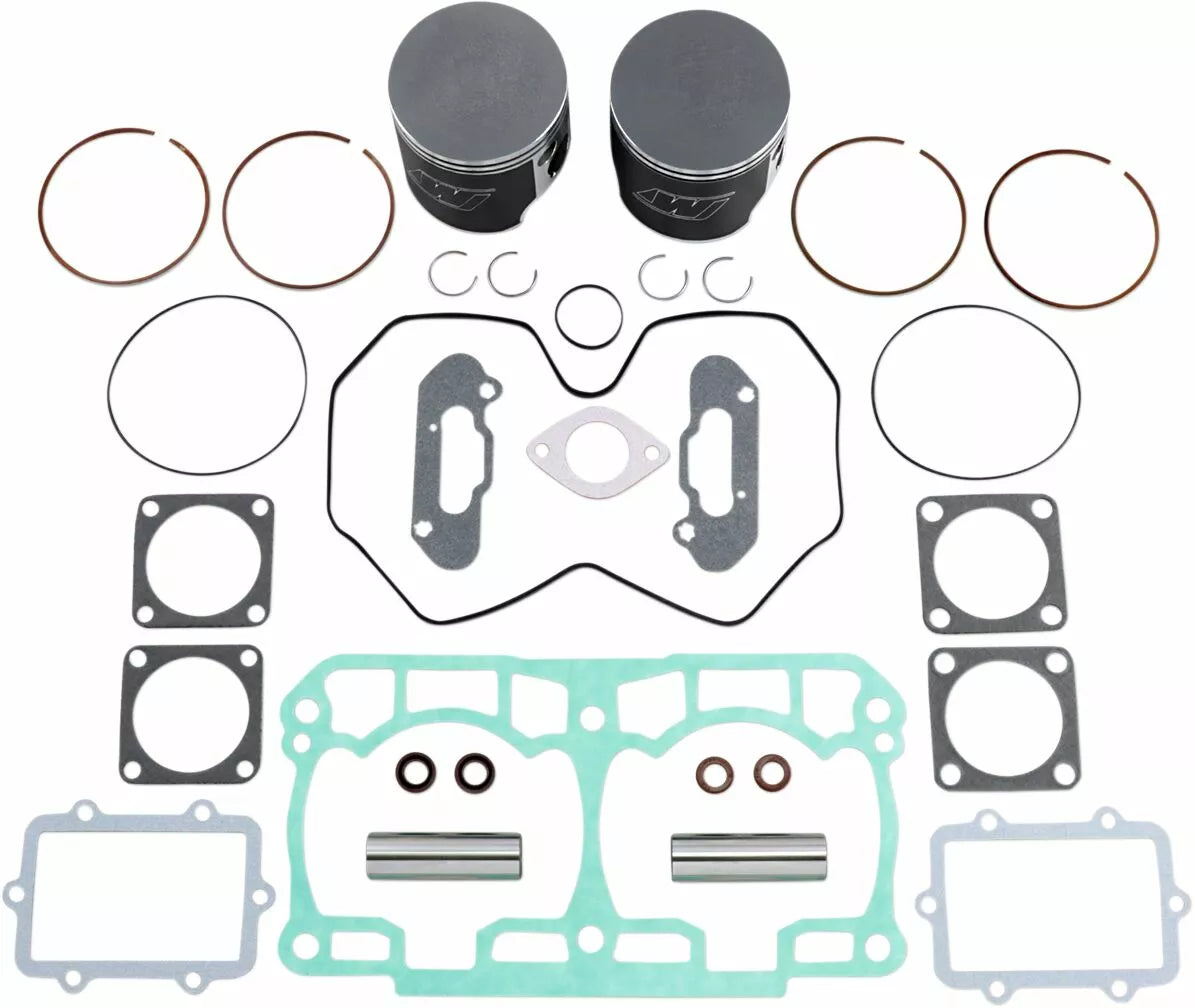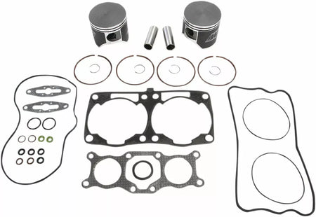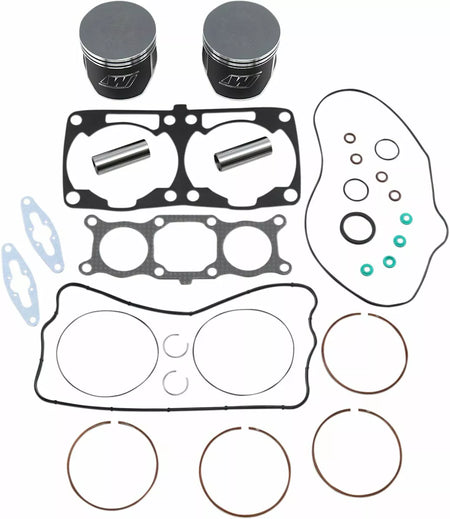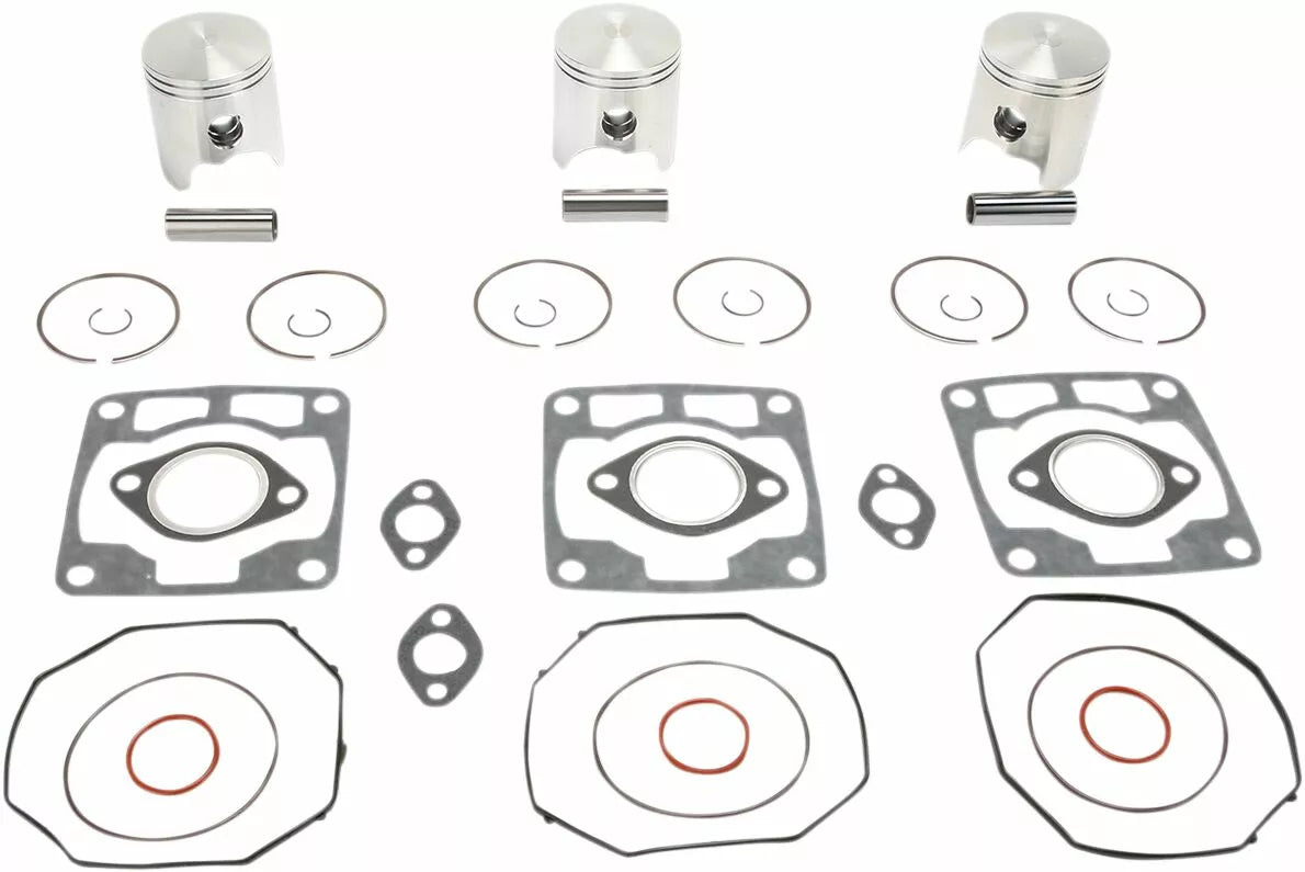 - Kit includes forged pistons, rings, wrist pins, circlips and top end gasket set
