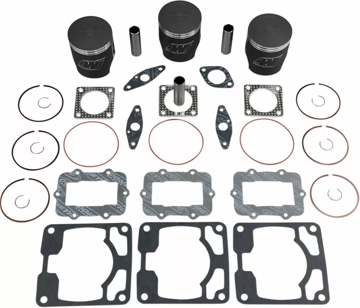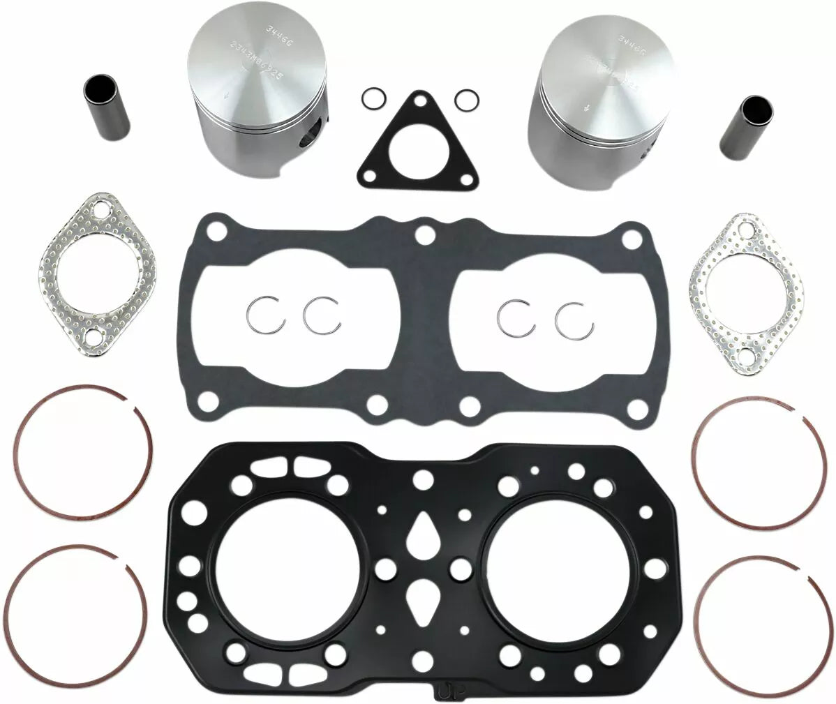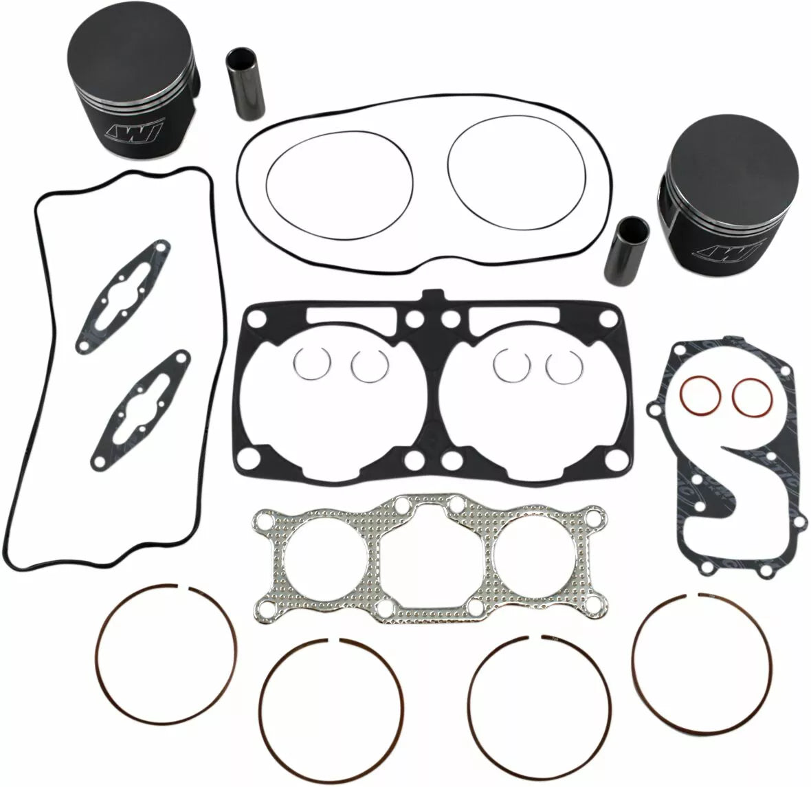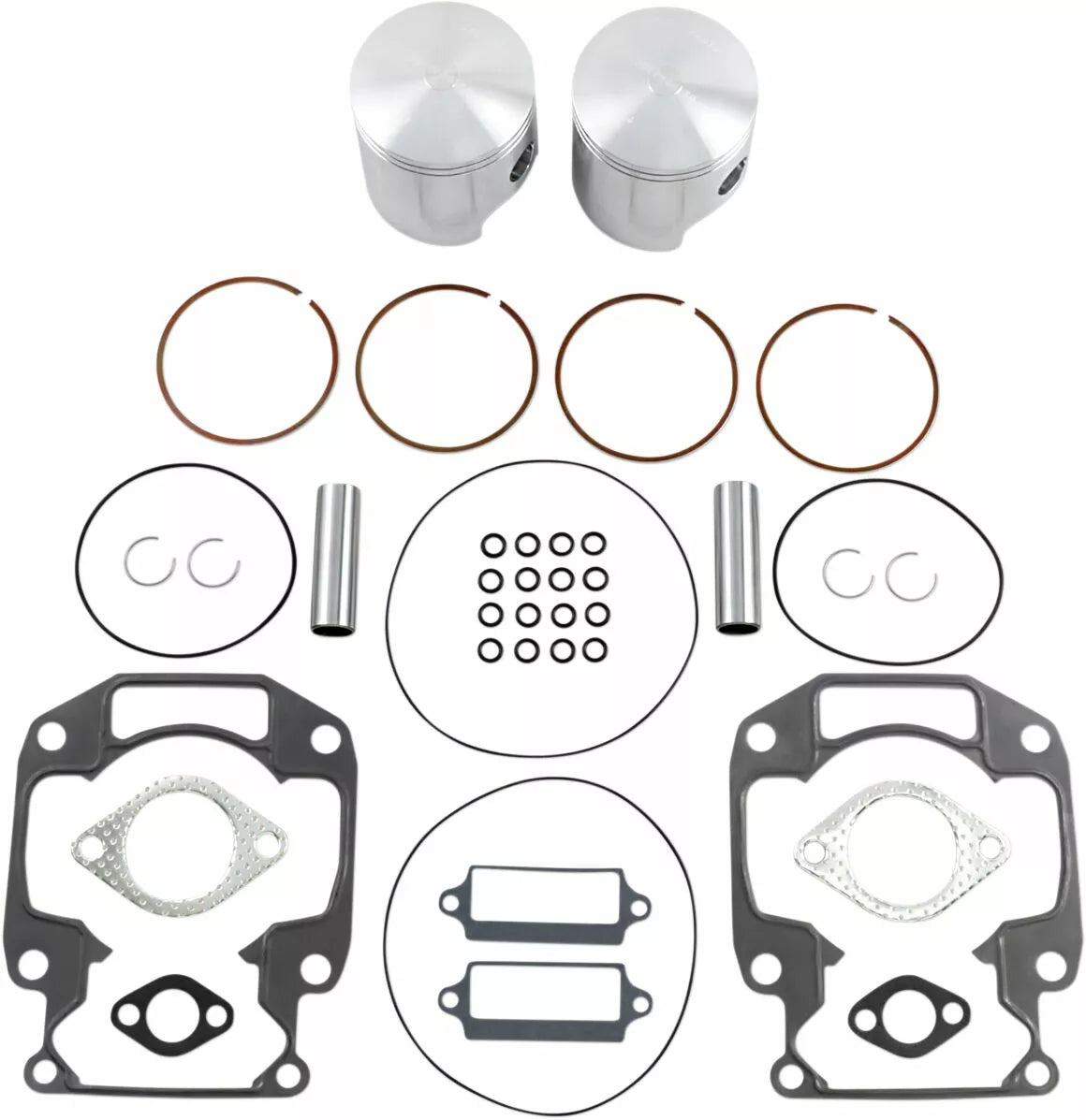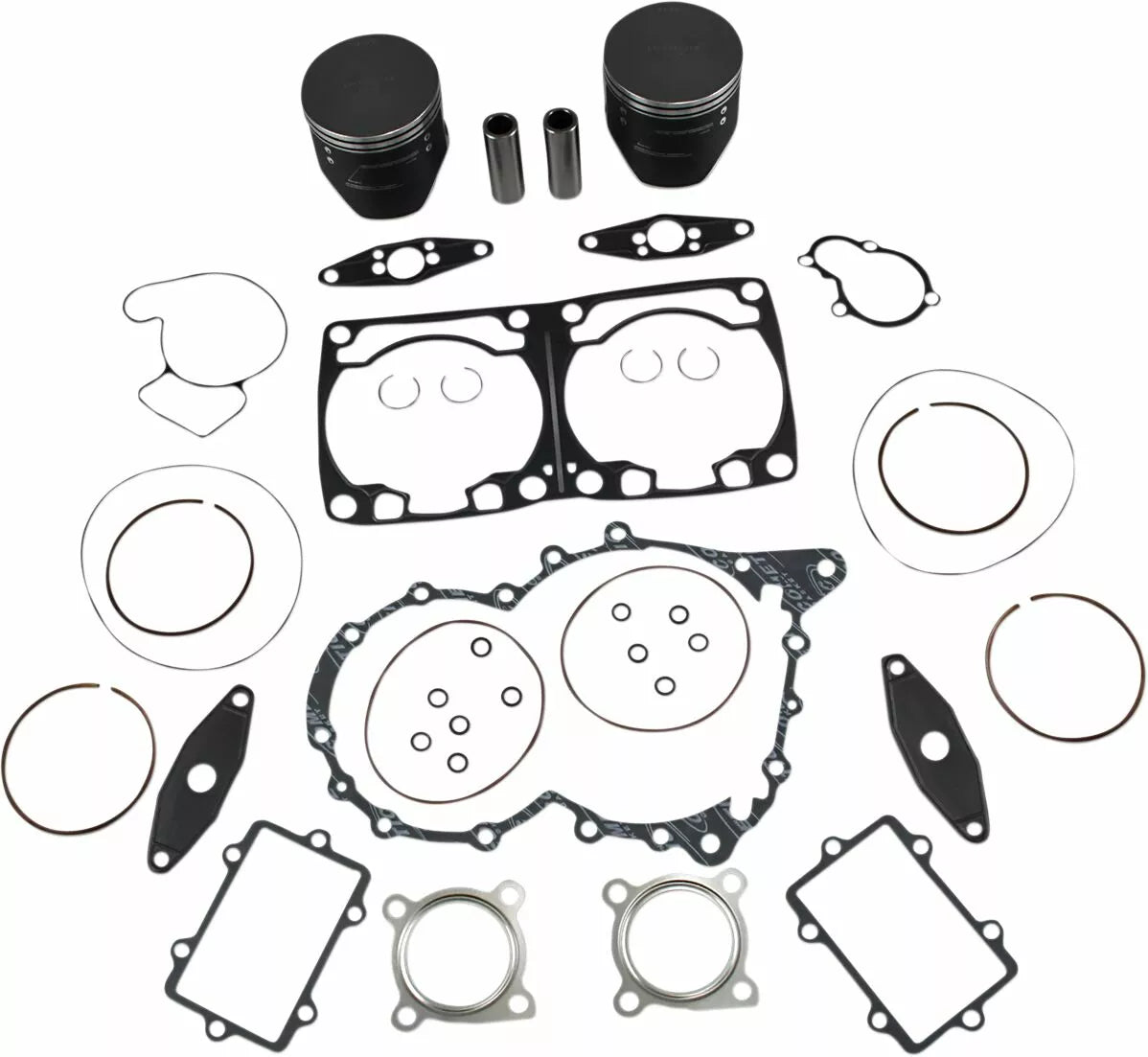 - Kit includes forged pistons, rings, wrist pins, circlips and top end gasket set