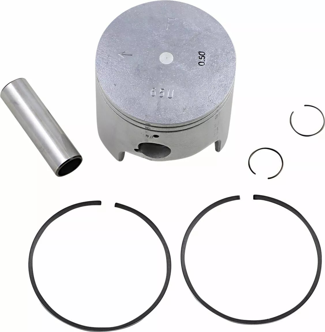 - Kit includes piston, rings, wrist pin and circlips